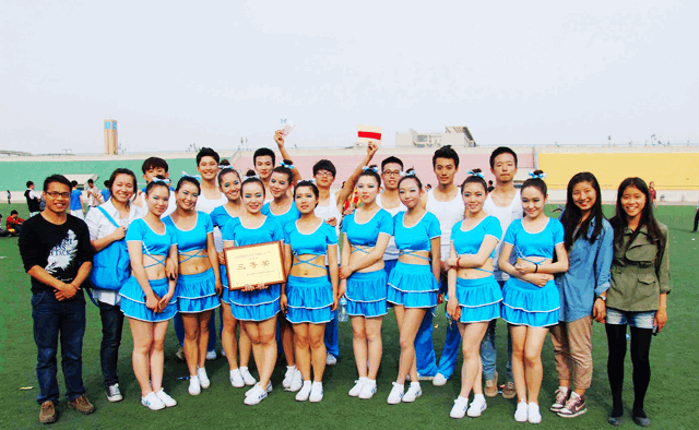 2013年4月12日下午我校2013年健康活力大赛暨啦啦操比赛在田径场隆重举行。校党委副书记王天平、各院系书记、辅导员老师和近千名同学出席观看比赛。本届比赛共有17个院系代表队参加,为使比赛更上一个台阶,更专业、更公平公正,本次我校邀请了陕西师范大学及体育学院健美操国家级裁判担任评委。 本次比赛我院高度重视,精心准备,团工委辅导员老师多次到训练现场为选手们鼓励加油,在院领导和老师的领导和指导下,经过一个多月的精心准备和艰苦训练,我院虽出场顺序排在第二,但仍以独一无二的登场,精彩的表演,整齐的动作和默契的配合赢得了评委和观众的认可,经过激烈角逐最终以第五名的好成绩荣获“三等奖”,党委副书记王天平为我院代表队颁奖并表示祝贺。 我院学生的精彩表现弘扬着健康、活力的生命主题也展现了我院学生青春向上的精神风貌和激情蓬勃的昂扬斗志。