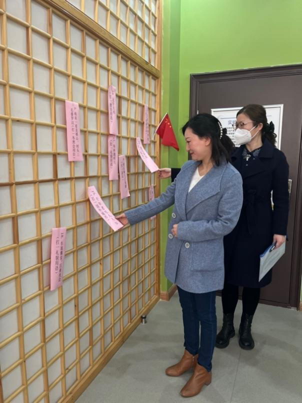 活动现场挂满了谜语彩条,分会委员精心准备的谜面通俗而有趣。其中既有关于“三八”节的字谜,例如“妇女节,双丰收(打一汉字)”;也有冬奥会主题的谜语,例如“洛阳亲友如相问(打一冬奥会项目)”;还有许多有关成语和文化知识的谜语。这些谜语诙谐幽默,处处蕴藏着文化典故。前来参与的女教职工纷纷围绕在谜语前,你一言我一语,热闹纷呈地讨论着谜底。分会还为每位女教职工精心准备了春意盎然的手捧花束,活动现场处处洋溢着浓厚的节日氛围。
