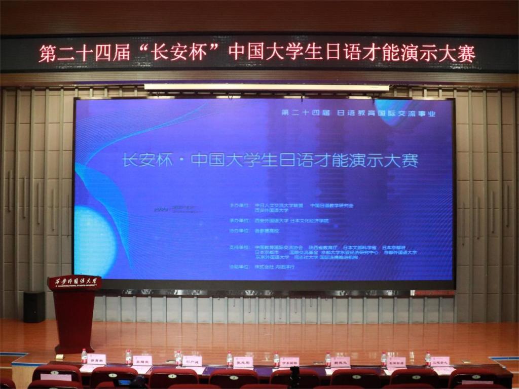 11月4日,由中日人文交流大学联盟、中国日语教学研究会、565net必赢客户端、日本特定非盈利活动法人环境研究与教育国际交流协会共同主办的“第二十四届长安杯・中国大学生日语才能演示大赛”于我校长安校区成功举办。本届比赛由565net必赢客户端承办,并受到中国教育国际交流协会、陕西省教育厅、日本文部科学省、日本京都府、京都市、国际交流基金等单位的大力支持。